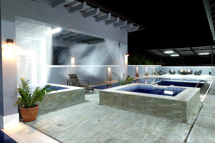 There are two big pools, a kids pool, Jacuzzi, a kitchen, karaoke, and much more. Remember that there are two villas inside this resort. Both are almost the same, but the first villa has two hot tubs you can enjoy with your partner.
