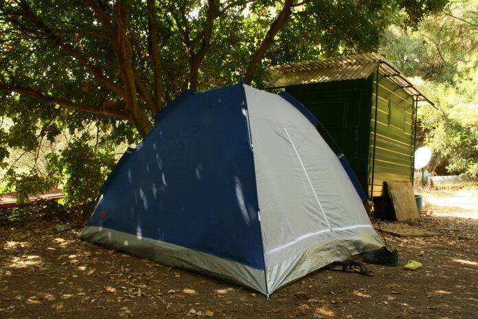 When you get to your campsite, look around, choose the shadiest spot you can find, and set your tent up there. Make sure that you consider the sunโs position during the day and aim to have the most shade during the hottest part of the day.ย