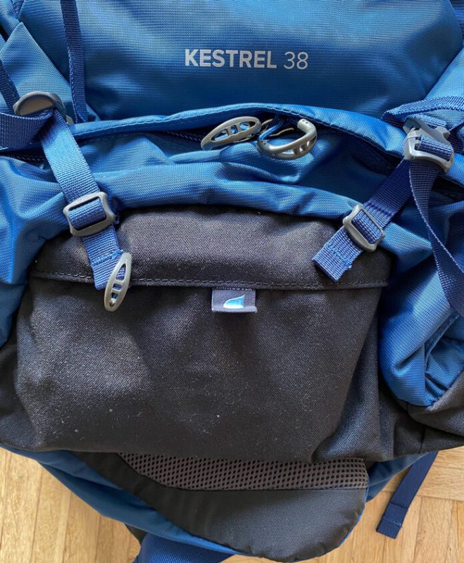 It also has a lot of extra straps for carrying gear outside of the Osprey Kestrel 38, and a mesh front pocket.